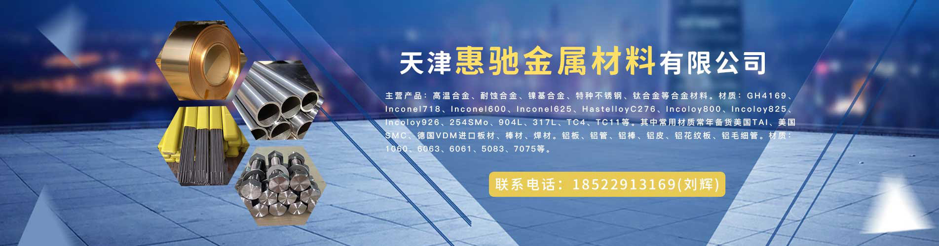 天津惠馳金屬材料有限公司是一家服務于金屬材料的專業公司。公司秉承著“專業、誠信、值得信賴”的經營理念,致力合金產品領域提供一流的產品同服務。我們多年的經驗同積累,我們的專業和不斷地創(chuàng)新,我們的誠信和優(yōu)質服務, 得到了各行業客戶的一致肯定和好評,為企業贏得了卓越商譽。 ??